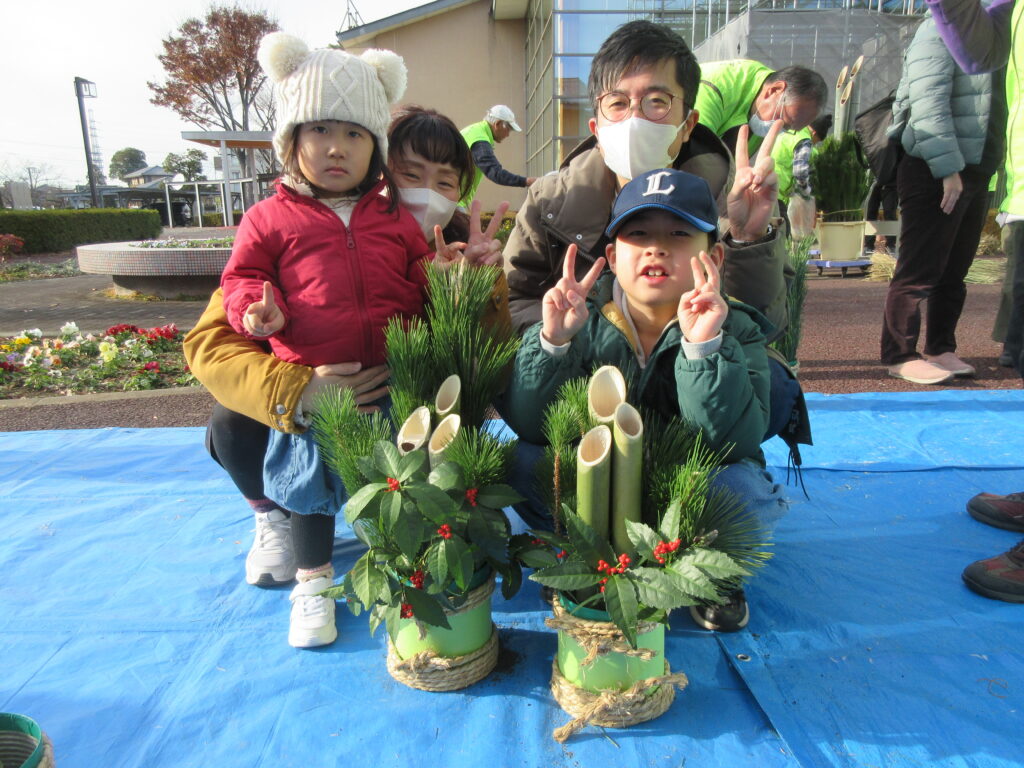 子育てひろばで、宮代町さわやかクラブ連合会のみなさんと一緒に、ミニ門松を作ります。お正月にお家の玄関に飾ろう!
