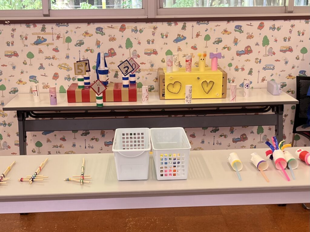 屋内は、紙ヒコーキづくり、常時昆虫標本の展示、輪投げ、幼児の玩具など。屋外は、モルック、竹馬、竹とんぼ、ベーゴマなど。昔遊びで待っています♪