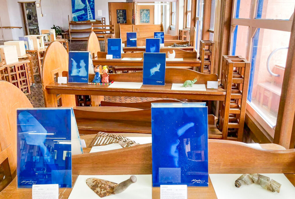 進修館の「世界の中心」というコンセプトに共鳴したアーティストが、それぞれ大切にしている中心(=「へそ」)を持ち寄り、思いっきり表現することで、その「へそ」を体験した人たちと改めて進修館の面白さを発見する企画。太陽光による青写真で大切なものを型取る「万影集編纂計畫2025」、町民から集めた写真の等身大パネル展示「進修館をアルバムにする」、サウンドインスタレーション「へそで音を聴く-ワークショップ & ライブ」など、この場所ならではのアート・展示コンテンツが盛りだくさんでした。