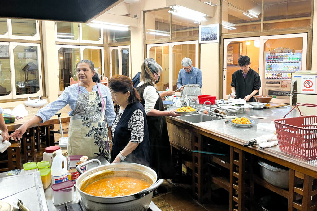 「宮代でアジアと交流する会」の略である「宮アジ会」は、毎月一回、食堂で開催されるスリランカカレーを食べる会です。津波地震で被災したスリランカへの支援をきっかけに始まり、なんと30年続いています。本格的なスパイスカレーを目当てに、常連さんもいれば初参加も、多世代で多国籍な集まりです。