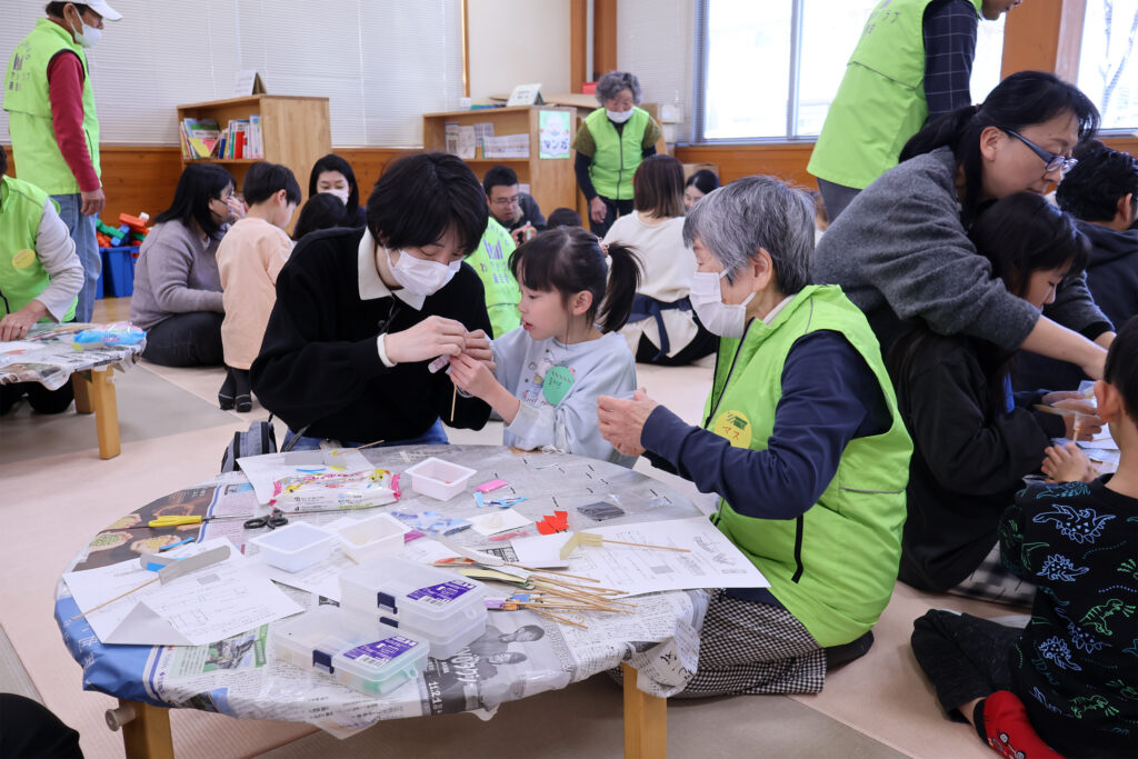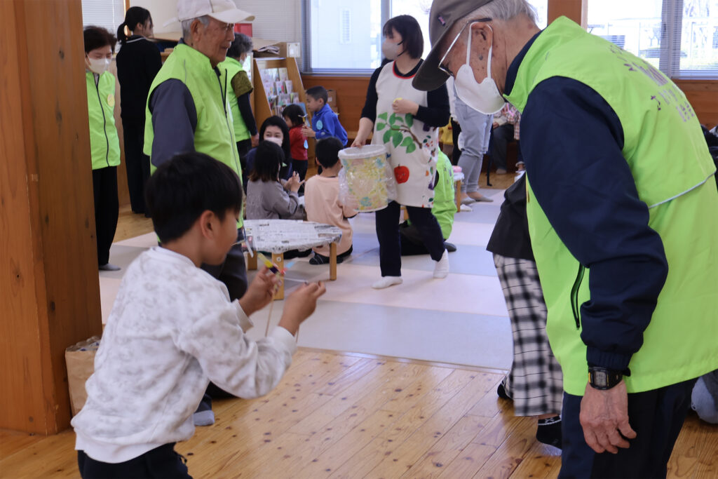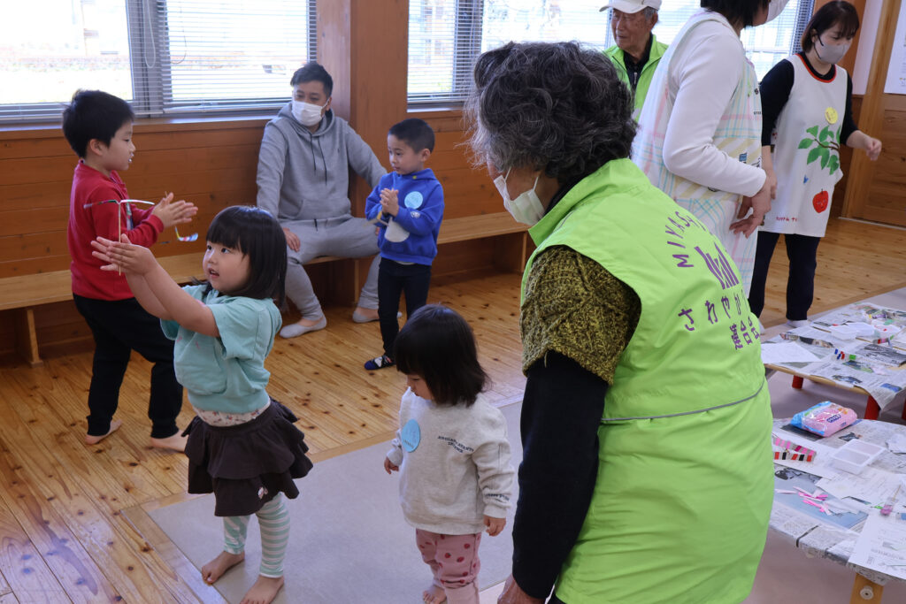 完成後は、紙とんぼを実際に飛ばして遊ぶ姿が見られ、ひろばは笑顔に包まれました。世代を超えた交流の場となる、温かなひとときとなりました。