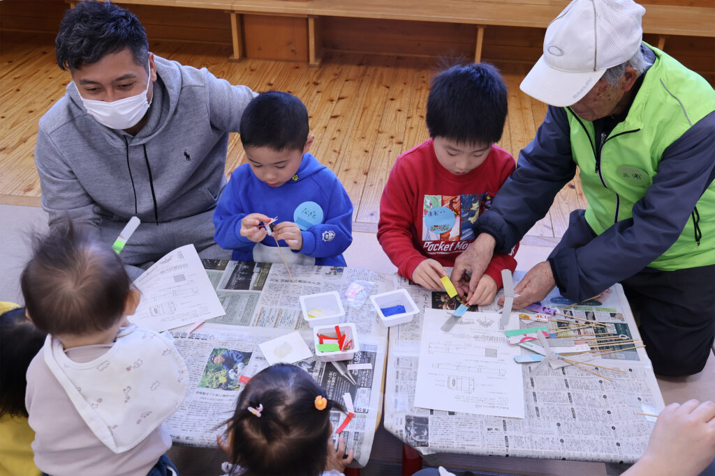 • 3月14日(土)、子育てひろば・きしゃぽっぽにて、三世代交流事業「紙とんぼづくり」を開催しました。