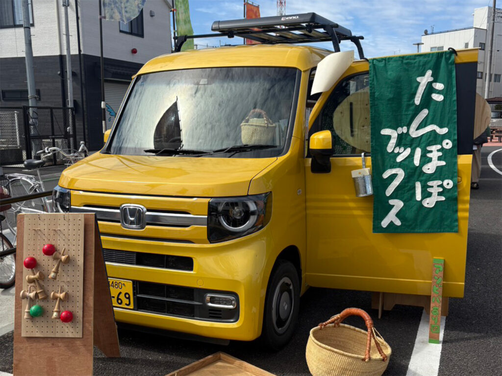 公俊さん:遊び道具をたっぷり積んだ黄色い軽バンで、町のあちこちへ出向いています。遊び場を車に乗せて、いろんな場所へ出向いていく、いわゆるプレイカーや移動式遊び場の活動です。